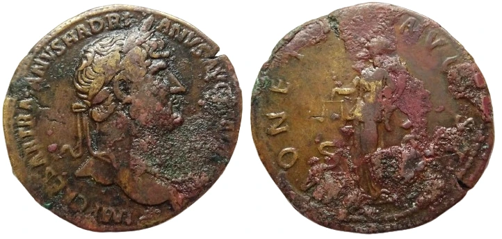 HADRIAN AE sestertius (119-123 AD) – Moneta Avgvsti